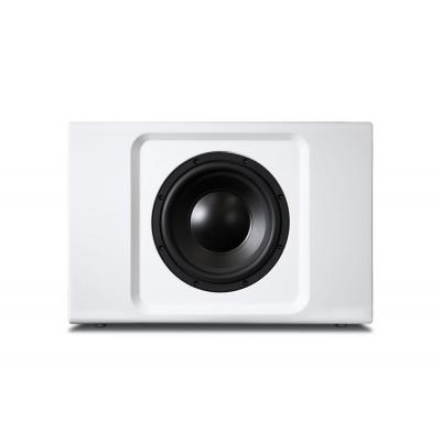 The loudspeaker features a 8” LF driver powered by a high efficiency amplifier including a low power standby mode. The frequency response of the speaker is 22Hz – 150Hz. Inbuilt DSP allows for equalization as well as other audio processing. Access to content is via wired ethernet or WiFi for glitch-free streaming.