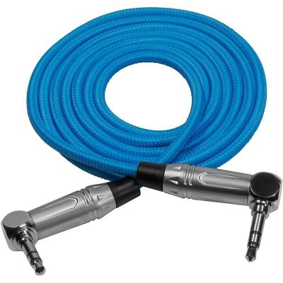 This right-angle 3.5mm TRS stereo audio cable is available in a 10" or 48" length and is reinforced with metal connectors and nylon braiding.