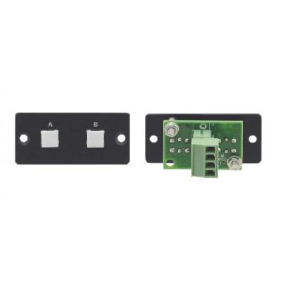 The RC−20TB is a two−button remote contact closure switcher. The wall plate insert can be used with the VP−81SIDN step−in switcher or any other Kramer product with momentary contact closure control.