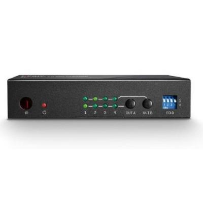 The Lindy 4x2 HDMI 2.0 18G Matrix Switch is a high performance solution for distributing content from multiple source devices to two displays.